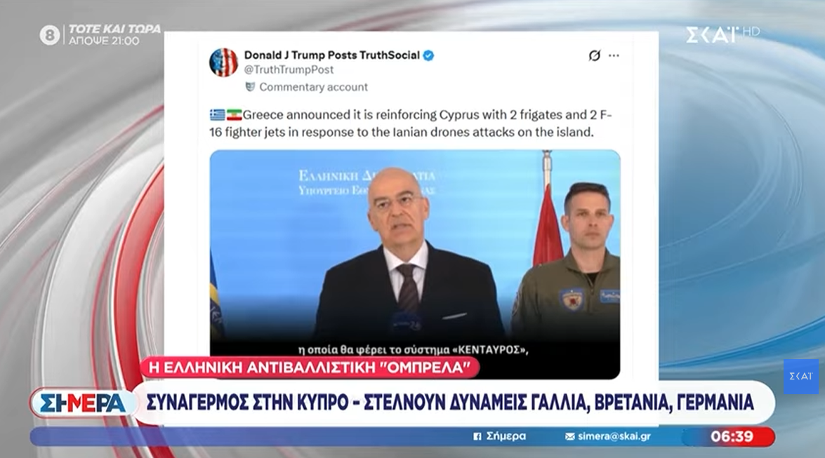 Μιλώντας στο Action24 το βράδυ της Τετάρτης (4/3/26) ο Δημήτρης Κουτσούμπας είπε χαρακτηριστικά: «Είπα την πληροφορία που είχα η οποία είναι έγκυρη ότι τα 4 drone που κατευθύνθηκαν προς την Κύπρο και την Ελλάδα, τα δυο αφορούσαν Σούδα και τα δυο Ακρωτήρι».