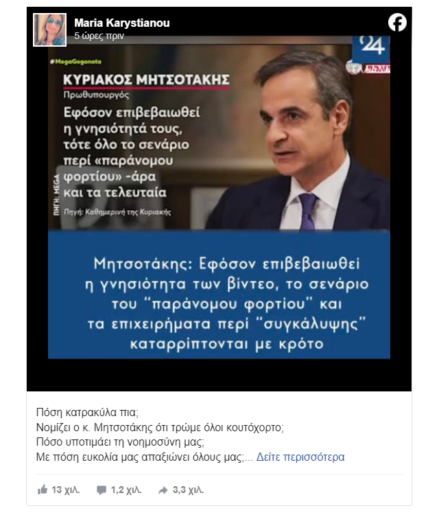 Και γιατί κ. Μητσοτάκη, ολόκληρος Πρωθυπουργός, ασχολείστε με τα fake video που βρέθηκαν στον κάδο σκουπιδιών, και δεν κινείτε γη και ουρανό για να βρεθούν τα εξαφανισμένα αληθινά αρχεία ήχου και εικόνας που κατασχέθηκαν άμεσα τις πρώτες μέρες από τη Διεύθυνση Εγκληματολογικών Ερευνών και ΤΑ ΟΠΟΙΑ ΔΥΟ ΧΡΟΝΙΑ ΜΕΤΑ ΔΕΝ ΕΧΟΥΝ ΜΠΕΙ ΑΚΟΜΗ ΑΠΟ ΤΟΝ ΑΝΑΚΡΙΤΗ ΣΤΗ ΔΙΚΟΓΡΑΦΙΑ, ΩΣΤΕ ΚΑΝΕΙΣ ΝΑ ΜΗΝ ΔΕΙ ΚΑΙ ΑΚΟΥΣΕΙ ΤΙ ΕΓΙΝΕ ΣΤΙΣ 28.02 και στις 01.03;