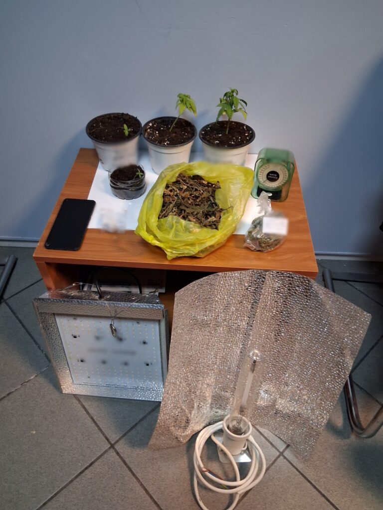 - -4- καλλιεργούμενα δενδρύλλια κάνναβης, εκ των οποίων τρία σε αντίστοιχες γλάστρες και ένα εντός πλαστικού δοχείου,