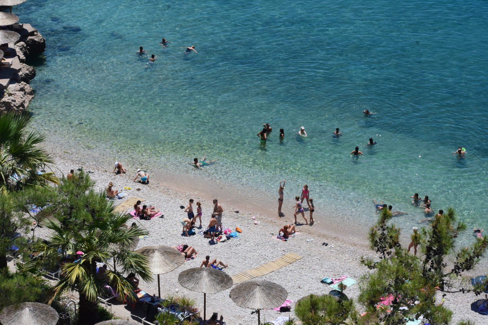 Οι ταλαιπωρημένοι αλλοδαποί που προσέγγισαν στην πολυσύχναστη παραλία στοιβαγμένοι σε ένα πλοιάριο, πηδούσαν κραυγάζοντας στο νερό για να βγουν στην ακτή, μπροστά στα μάτια των τουριστών και των οικογενειών με τα παιδιά τους που είχαν βρεθεί εκεί για το μπάνιο τους.